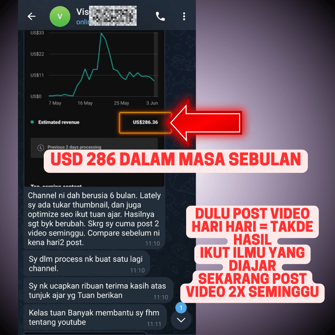 Dari channel ke 2,3,4 tu, saya mula jana income dalam USD pula.