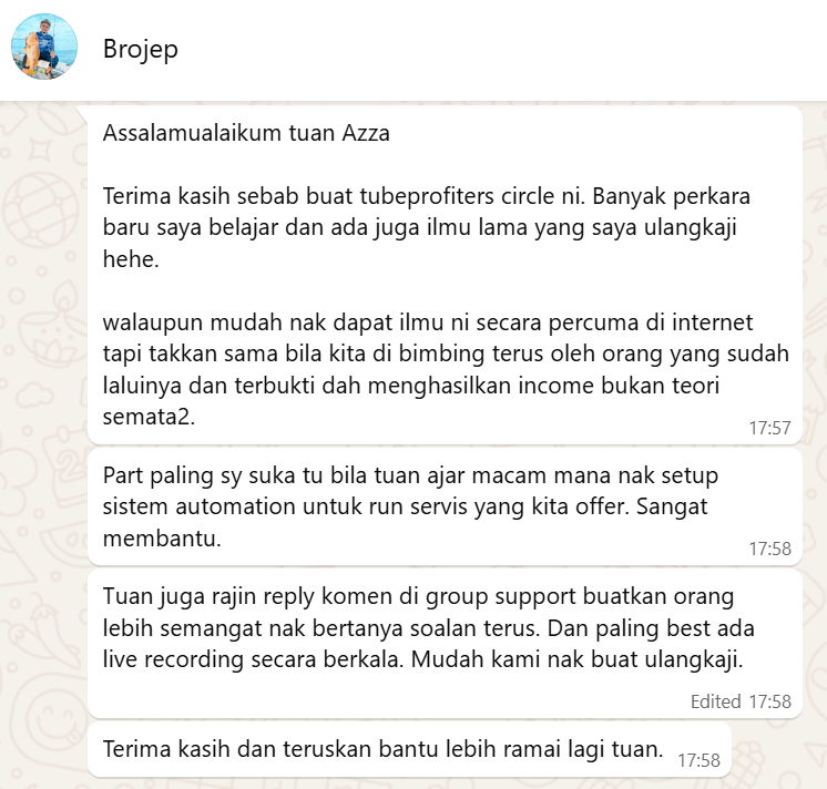 Saya hanya akan beri kepada mereka yang dah selesai buat dan faham semua langkah asas dalam TubeProfiters Circle