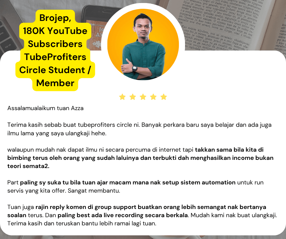 Tapi kalau pilihan awak nak hasil lebih cepat dan nak jimatkan masa, saya nak jemput awak join saya dalam TubeProfiters Circle.